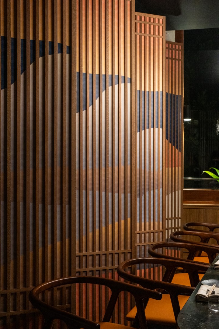 The client required a custom joinery solution that would elevate the restaurant’s ambiance while maintaining high levels of functionality and durability. The goal was to create a seamless blend of traditional Japanese design elements with a contemporary hospitality environment. The design needed to align with the restaurant’s architectural vision and provide a calm, elevated aesthetic that complemented the dining experience.